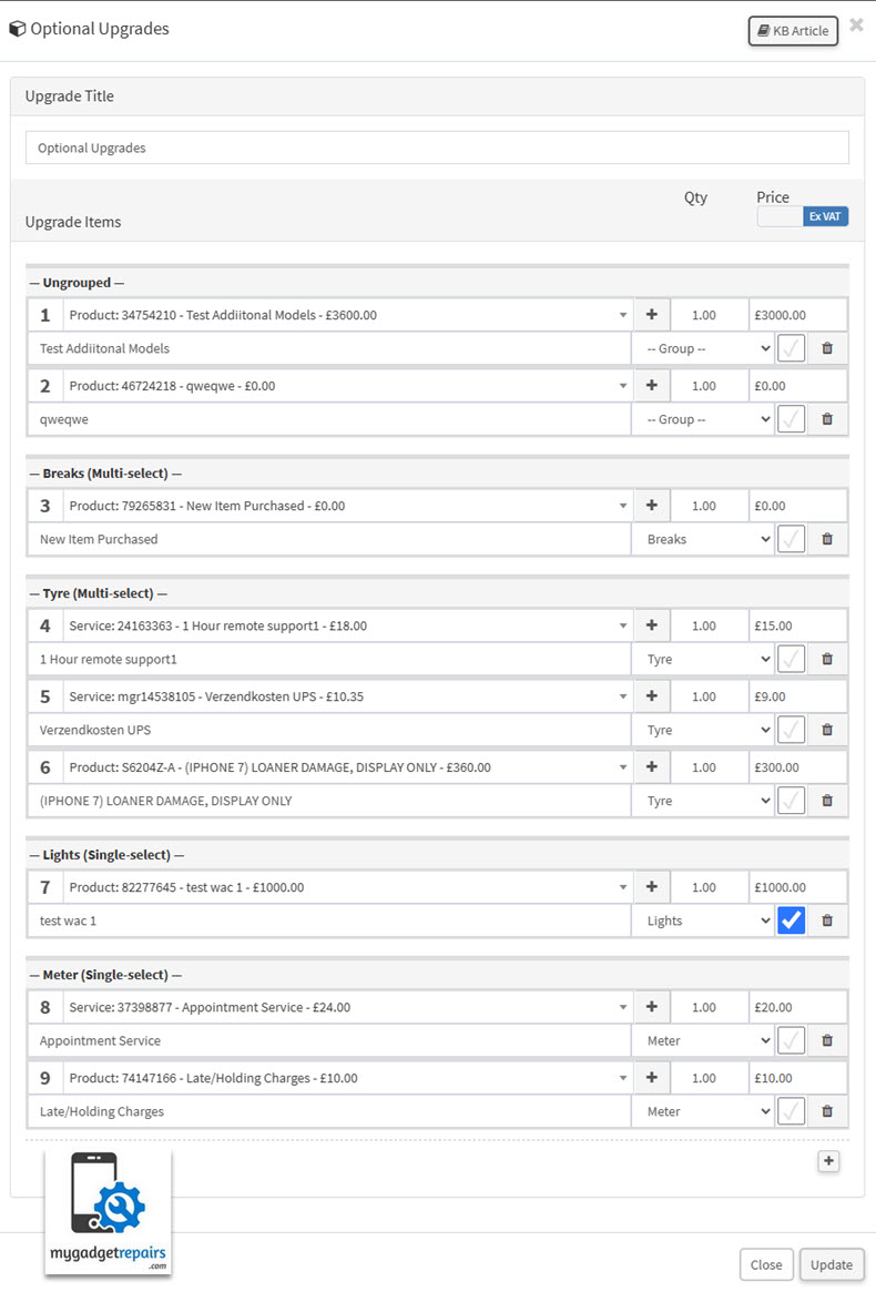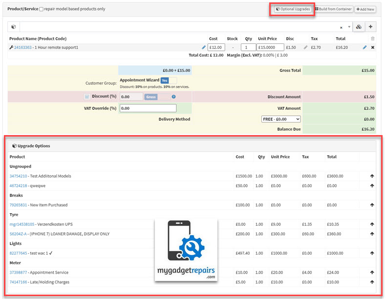 Optional Upgrade Groups provide a clear and structured way to manage upgrades, making it simple for staff to organise, select, and review options while ensuring customers receive a professional and consistent experience. By using groups, default selections, and logical ordering, you can streamline workflow, enhance upselling, and improve overall satisfaction.